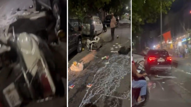 या भीषण अपघातामध्ये डिलिव्हरी रायडरची दुचाकी संपूर्णतः चक्काचूर झाली. विशेष म्हणजे दुचाकीवरील सर्व डिलिव्हरी सामानदेखील या अपघातात उद्ध्वस्त झाले. अपघातानंतर कार चालक घटनास्थळावरून पळून गेला. दरम्यान, अपघातावेळी डिलिव्हरी रायडर काही क्षणांसाठी बाजूला गेला असल्याने तो थोडक्यात बचावला. मात्र, अपघातानंतर डिलिव्हरी रायडरने आपले उपजीविकेचे साधन नष्ट झाल्याचे पाहून मोठा धक्का बसला.