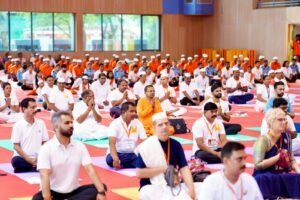 पुणेकरांचा उत्स्फूर्त सहभाग – योगासने, हरिपाठ आणि सामूहिक ध्यान कार्यक्रमात वारकऱ्यांनी पारंपरिक वेशात उपस्थित राहून योगासने, प्रार्थना, नामस्मरण, हरिपाठ आणि ध्यानधारणा केली. योग आणि भक्तीचा एकत्रित अनुभव देणारा हा उपक्रम पुण्यातील नागरिकांसाठी एक अविस्मरणीय क्षण ठरला.