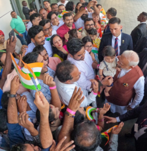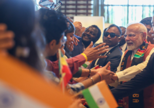 अॅक्रा, घाना – पंतप्रधान नरेंद्र मोदी सध्या आपल्या परदेश दौऱ्यानिमित्त घानाच्या अॅक्रा शहरात आहेत. या दौऱ्यादरम्यान अॅक्रामधील भारतीय समुदायाने त्यांचे उत्स्फूर्त आणि आत्मीय स्वागत केले. पंतप्रधान मोदींनी या अभूतपूर्व प्रेमाला प्रतिसाद देत सोशल मीडियावर लिहिले, “Gladdened by the incredible warmth shown by the Indian community here in Accra, Ghana. The spirit of togetherness and the deep cultural linkages are truly wonderful.”