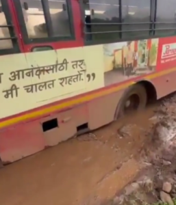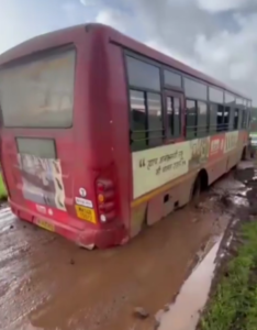 खेड तालुक्यातील तीन गावांमध्ये बससेवा बंद झाली आहे. कारण? रस्त्यावर पडलेले इतके खोल खड्डे, की बस अडकली आणि बाहेर काढायला दोन ट्रॅक्टरने तब्बल १० तासांचा वेळ लागला!