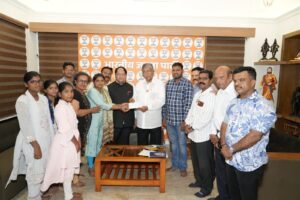 भोई प्रतिष्ठानच्या पुण्यजागर प्रकल्पांतर्गत, नांदेड जिल्ह्यातील आत्महत्याग्रस्त शेतकऱ्यांच्या मुलांच्या शिक्षणासाठी मदतनिधीचा धनादेश उच्च व तंत्रशिक्षण मंत्री मा. चंद्रकांतदादा पाटील यांच्या हस्ते त्यांच्या निवासस्थानी आयोजित कार्यक्रमात वितरित करण्यात आला. या वेळी चंद्रकांतदादांनी आपल्या भाषणात मंडळाच्या उपक्रमाचे विशेष कौतुक करत सांगितले की, “गणेश मंडळांचे कार्य केवळ आरास, रोषणाई आणि ढोल-ताशांपुरते मर्यादित नाही. ही मंडळे समाजप्रबोधनाचे आणि मदतीचे केंद्र बनत आहेत. त्यांचे हे योगदान नक्कीच प्रेरणादायक आहे.”