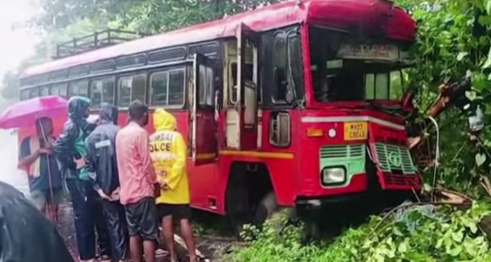 रायगड / महाड : रायगड जिल्ह्यातील महाड-दापोली राज्य मार्गावर एका एसटी बसला भीषण अपघात झाल्याची धक्कादायक घटना समोर आली आहे. ही पुणे फौजी आंबवडे मार्गावरील एसटी बस आंबवडे दिशेने जात असताना, रस्त्यावरील नियंत्रण सुटून बस थेट रस्त्याच्या कडेला घसरून खाली दरीत आदळली.
