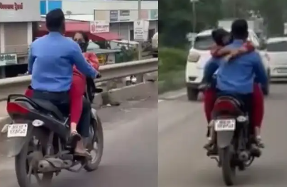 ▪️ व्हायरल व्हिडिओमध्ये महिला दुचाकीच्या टाकीवर पुरुषाकडे तोंड करून बसलेली दिसत आहे. ▪️ काही क्षणात ती झोपते, मिठी मारते, आणि त्या दोघांमध्ये अत्यंत अश्लील हालचाली सुरू होतात. ▪️ हे सर्व प्रकार गर्दीच्या महामार्गावर, इतर वाहनचालकांच्या समोर सुरू होते. ▪️ पाठीमागून येणाऱ्या दुचाकीस्वाराने हा प्रकार पाहून व्हिडिओ शूट केला आणि तो सोशल मीडियावर अपलोड केला.