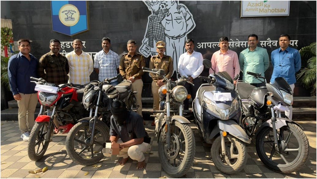 पुणे शहरात वाढत असलेल्या वाहनचोरीच्या घटनांवर प्रभावी नियंत्रण आणण्यासाठी पुणे पोलिसांनी मोहीम हाती घेतली असून त्याअंतर्गत हडपसर पोलीस स्टेशनने तब्बल ५ वाहनचोरीचे गुन्हे उघडकीस आणत मोठी कामगिरी केली आहे. या कारवाईत ३,३०,००० रुपयांचा मुद्देमाल जप्त करण्यात आला असून दोन वेगवेगळ्या तपासांत मुख्य आरोपी व एक विधीसंघर्षित बालकास ताब्यात घेण्यात आले आहे.