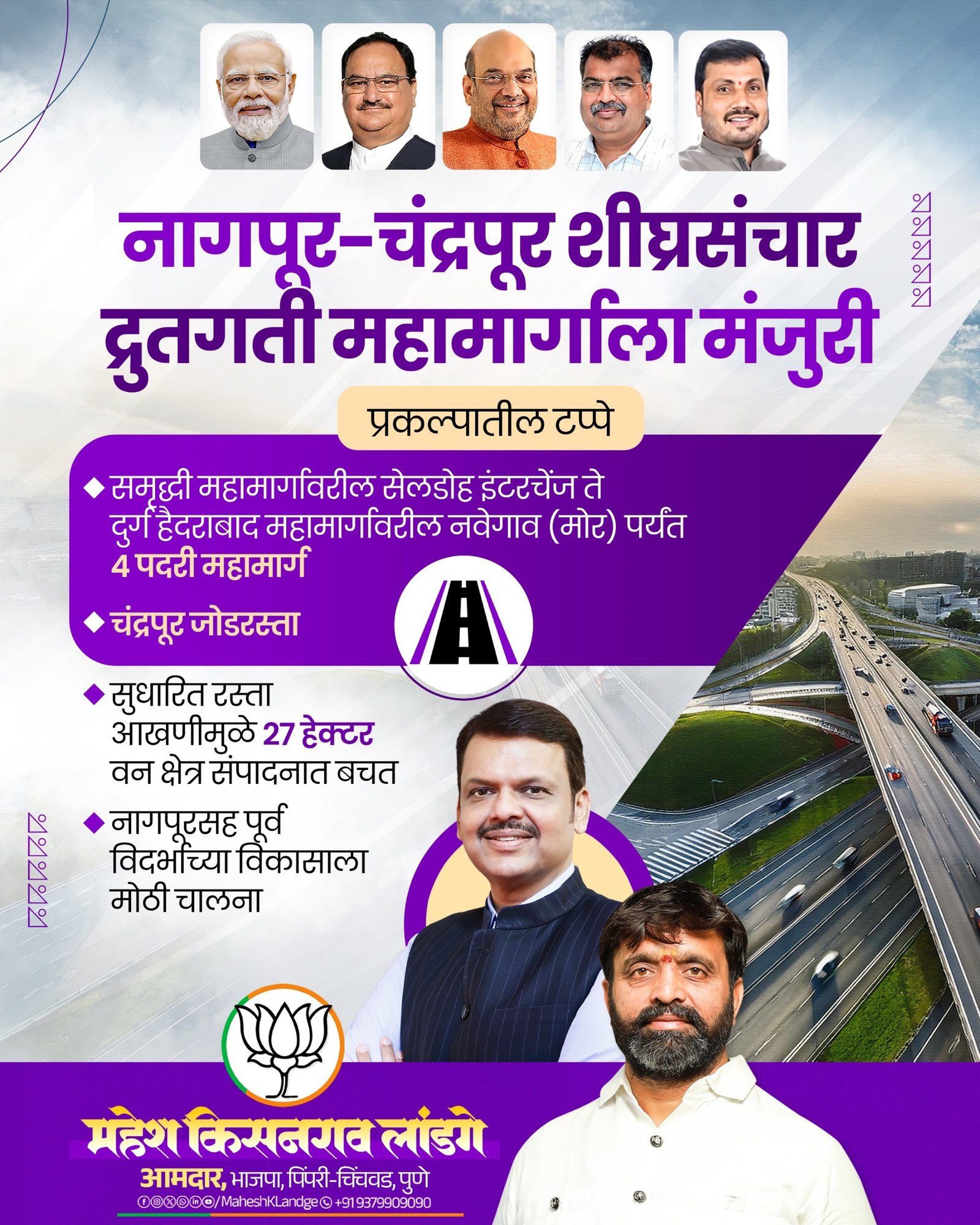 नागपूर–विदर्भासाठी अत्यंत महत्त्वाच्या मानल्या जाणाऱ्या नागपूर–चंद्रपूर शीघ्रसंचार द्रुतगती महामार्गाला आता अधिकृत मंजुरी मिळाली आहे. नव्या योजनेमुळे नागपूर, चंद्रपूर, बल्लारपूर, ब्रह्मपुरी परिसरासह संपूर्ण पूर्व विदर्भाचा विकास चौपट गतीने होण्याची अपेक्षा व्यक्त केली जात आहे. या प्रकल्पाचे तपशील, रचना आणि पर्यावरणपूरक फायदे याबाबत महत्त्वपूर्ण माहिती जाहीर झाली असून स्थानिक जनतेत उत्साहाचे वातावरण निर्माण झाले आहे.
