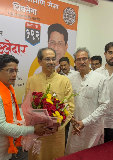 या प्रसंगी उद्धव ठाकरे यांनी उमेदवाराशी सविस्तर संवाद साधत आगामी निवडणूक ताकदीने, सकारात्मक विचारांनी आणि जनतेच्या प्रश्नांवर केंद्रित राहून लढण्याच्या शुभेच्छा दिल्या. स्थानिक विकास, सर्वसामान्य नागरिकांच्या समस्या, तसेच प्रभागाच्या सर्वांगीण प्रगतीसाठी शिवसेनेची भूमिका ठाम असल्याचे त्यांनी स्पष्ट केले.