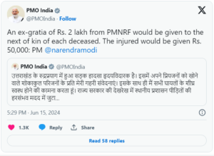 “PMNRF मधून प्रत्येक मृताच्या नातेवाईकांना 2 लाख रुपये आणि जखमींना 50,000 रुपये देण्यात येतील: PM,” असे पंतप्रधान कार्यालयाने ‘X’ वर शेअर केले आहे.
