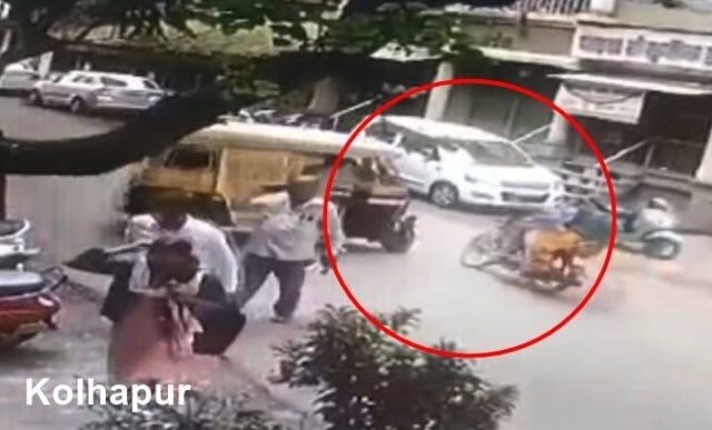 सीसीटीव्हीमध्ये कैद: कोल्हापूर दुर्घटनेनंतर ‘भुताटकी रिक्षा’चा कहर, पाच जण जखमी.