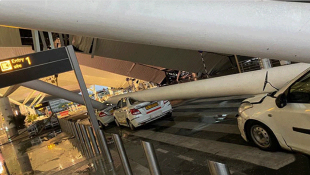 दिल्ली विमानतळाच्या टी1 टर्मिनलच्या छताचा काही भाग शुक्रवारी सकाळी जोरदार पावसामुळे कोसळला, असे दिल्ली अग्निशमन दलाने सांगितले. राष्ट्रीय राजधानी क्षेत्रात पहाटे झालेल्या जोरदार पावसामुळे दिल्लीत विमानतळाच्या टी1 टर्मिनलच्या छताचा काही भाग कोसळून किमान सहा जण जखमी झाले आहेत.