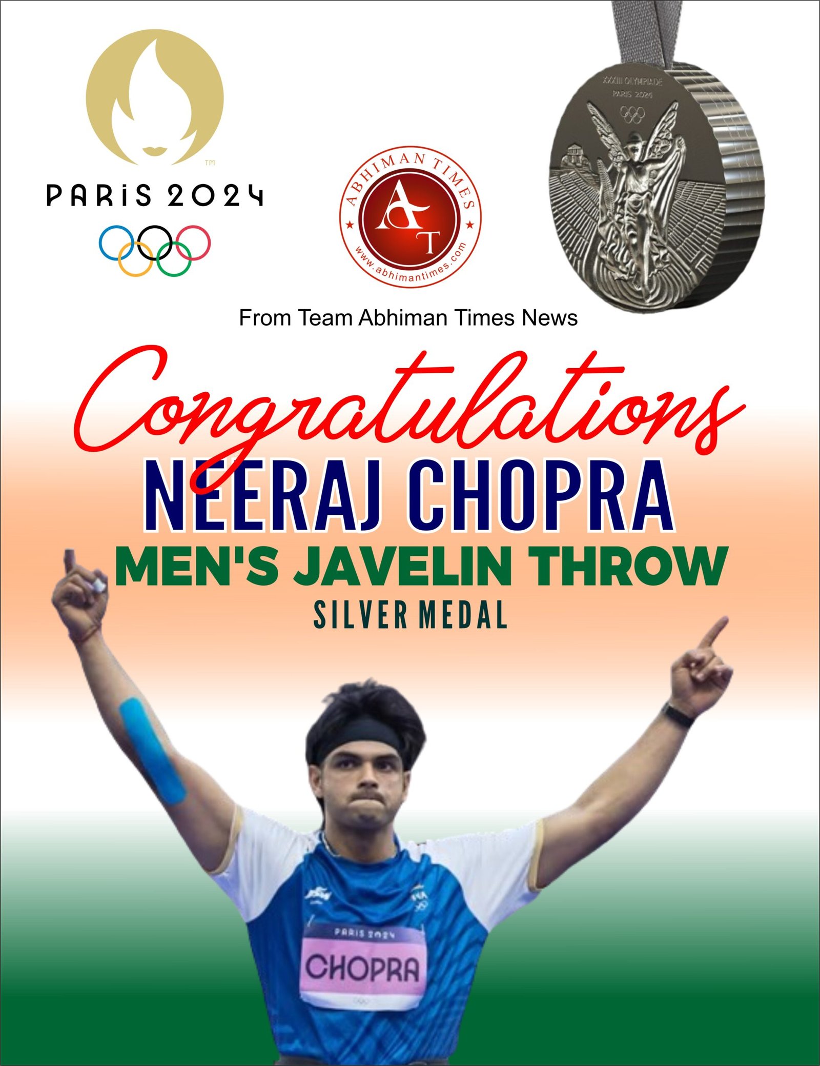 Congratulations to Neeraj Chopra on winning the silver medal in javelin at the Paris Olympics 2024! Your hard work, dedication, and passion have inspired millions and made India proud. Here’s to your remarkable achievement and an incredible journey ahead!