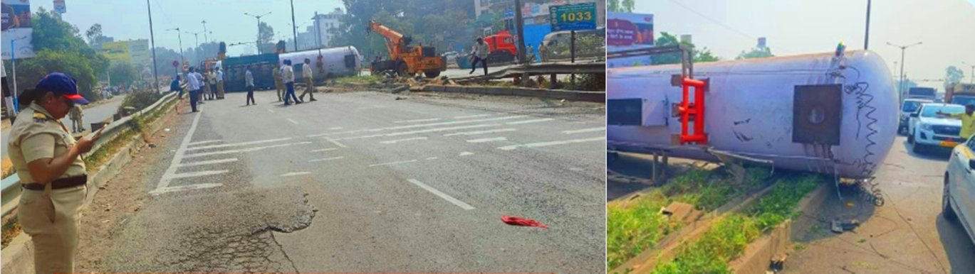 वारजे पुलाजवळ एलपीजी टँकरचा अपघात; प्रशासनाच्या तत्परतेमुळे मोठा धोका टळला