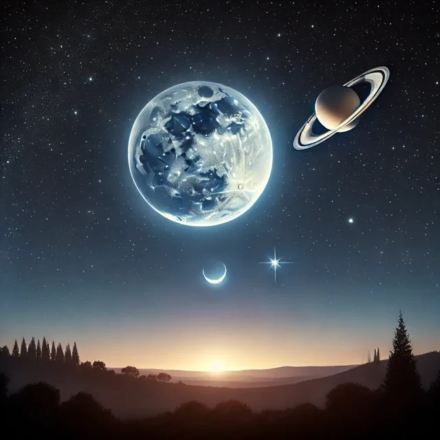 चंद्र, शुक्र, आणि शनि यांचा त्रिवेणी संगम आकाशात पाहायला मिळाला. चंद्राच्या मंद प्रकाशात शुक्राने तेजस्वी स्वरूपाने लक्ष वेधले, तर शनि ग्रह छोट्या प्रकाशबिंदूसारखा डौलाने उभा दिसला. या घटनेने खगोल निरीक्षकांना आणि सर्वसामान्य लोकांनाही आनंद दिला आहे.