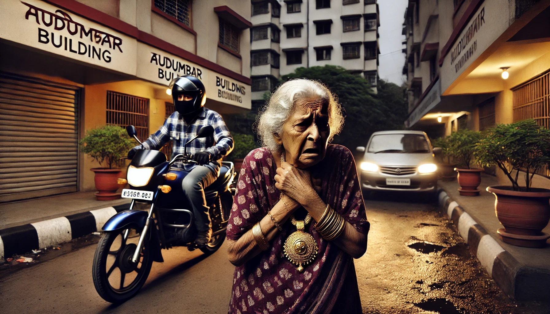 फिर्यादी, वय ८३, एक वृद्ध महिला, आपल्या दैनंदिन कामासाठी घराबाहेर पायी चालत जात होत्या. अचानक दुचाकीस्वार अनोळखी चोरटा त्यांच्या जवळ आला. -